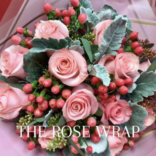 Our rose wraps can be arranged with any color rose and will include hypericum berries and greenery, wrapped in mylar and tied with a satin ribbon.