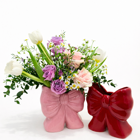 Soft blush blooms meet classic white florals in Tied with Love, a romantic design finished with a sweet bow detail. Elegant and heartfelt, this arrangement is perfect for expressing love in its most timeless form. A beautiful choice for Valentine’s Day, anniversaries, or simply saying “you mean everything to me.”